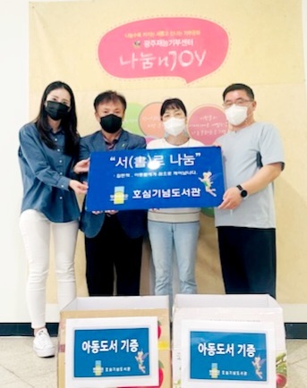 광주대학교 호심기념도서관에서 "서(書)로 나눔 : 잠든책, 아동들에게 꿈으로 깨어납니다." 도서를 기부해주시기 위해 광주재능기부센터를 방문해주셨습니다. |