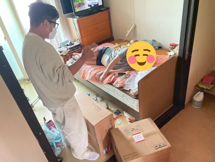 침대에 누워서는 거동이 힘든지 앉지도 못한 상태였고 식사는 했냐고 물어보니 오늘 한 끼도 못 먹었다고 했습니다.