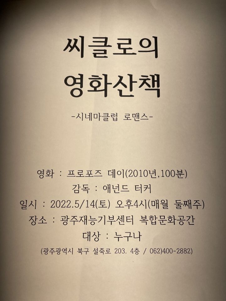 광주재능기부센터 용봉점 복합문화공간 "아낌없이 주는 나무" 에서 매월 둘째 주 토요일 오후 4시부터 영화상영이 있습니다.