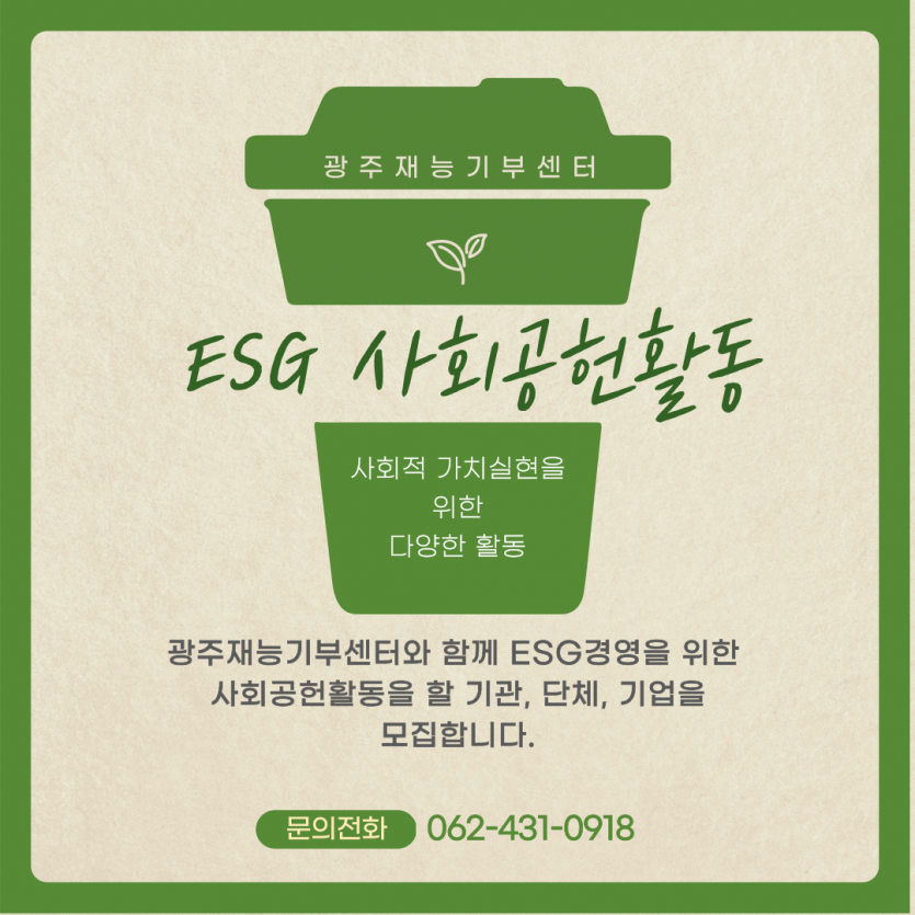 ESG 경영을 위한 임직원 사회공헌활동 기관, 단체, 기업을 모집합니다. |