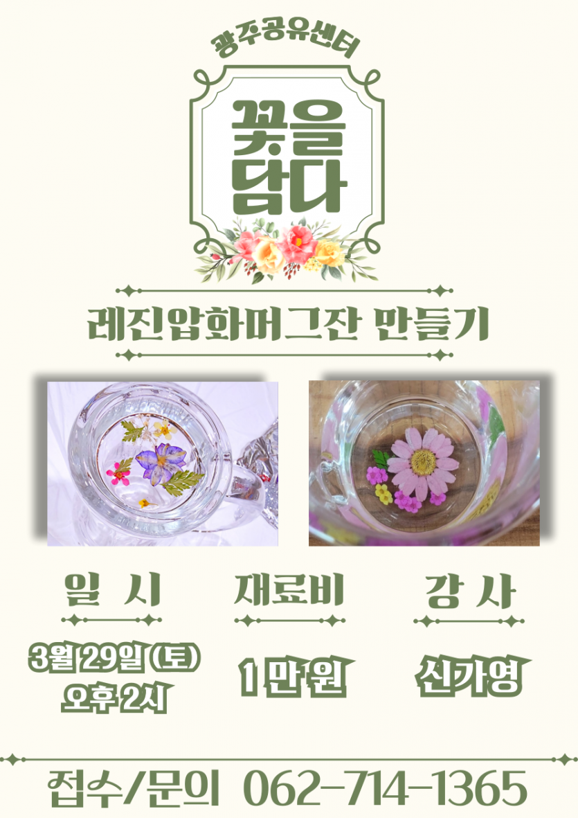 레진 압화 머그잔 만들기 체험활동 신청하세요.