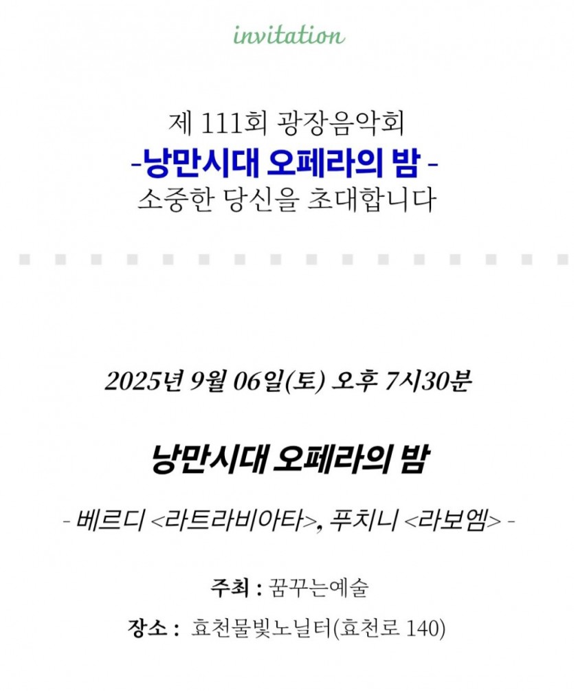 제 111회 광장음악회에 소중한 당신을 초대합니다. |