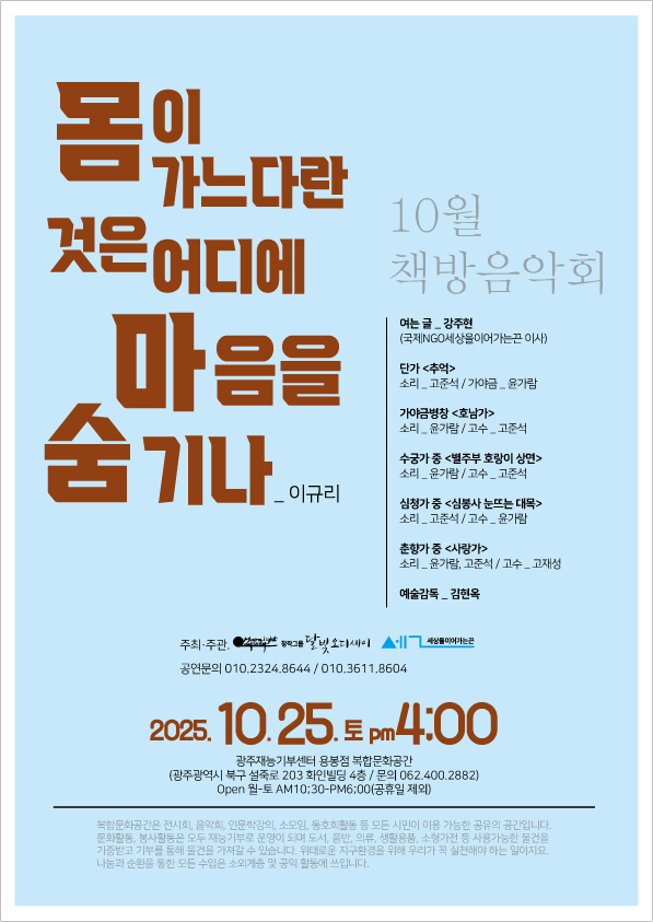 광주재능기부센터 용봉점 복합문화공간 '아낌없이 주는 나무'에서 '10월 책방 음악회'가 개최됩니다. |