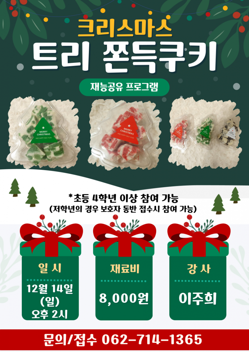 크리스마스 쫀득쿠키 만들기 체험활동 안내