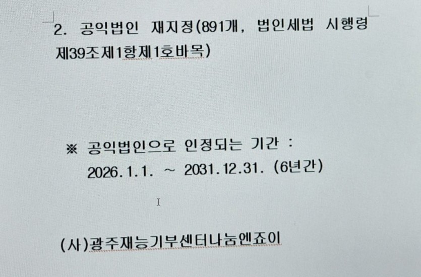 광주재능기부센터가 공익법인으로 기부금단체 재지정을 받았습니다. |