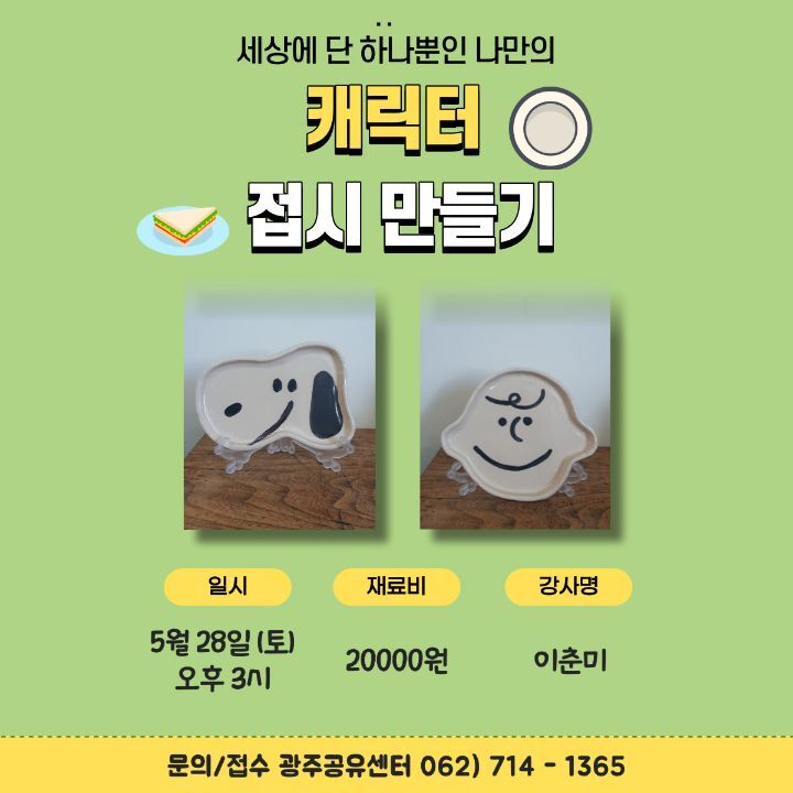 #광주재능기부센터 #광주공유센터 #재능공유프로그램 #재능나눔수업 #재능나눔 #재능기부 #캐릭터접시만들기 #체험활동 #참가자모집 #함께해요