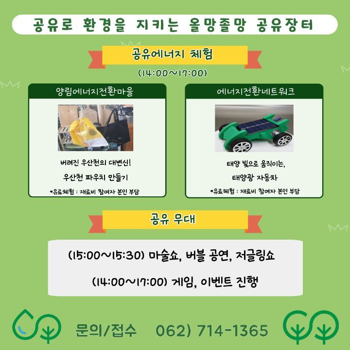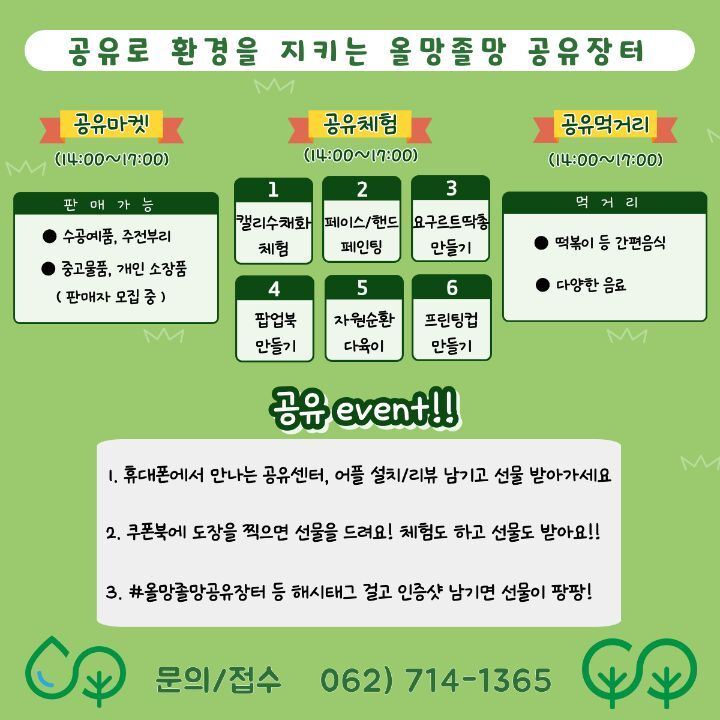 장터와 관련된 문의사항은 광주 공유센터로 연락 및 접수 바랍니다.