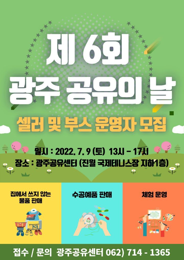 #광주재능기부센터 #광주공유센터 #제6회광주공유의날 #셀러모집 #체험프로그램 #7월9일 #오후1시부터5시까지 #공유의날 #진월국제테니스장지하 #참가자모집