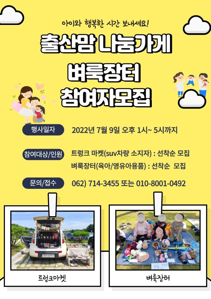 출산맘 나눔가게에서 벼룩장터 참여자를 모집하고 있습니다. |