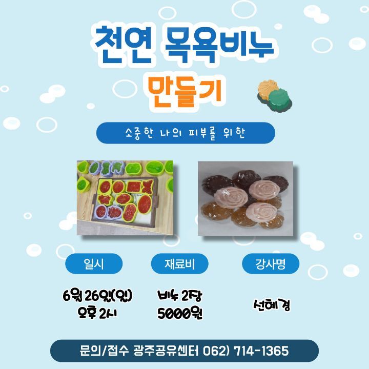 천연 목욕 비누 만들기 체험 참가자 모집 안내