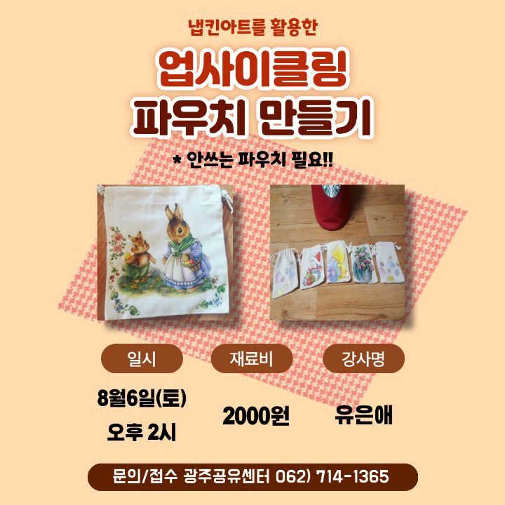 업사이클링 파우치 만들기 체험 참가자 모집 안내
