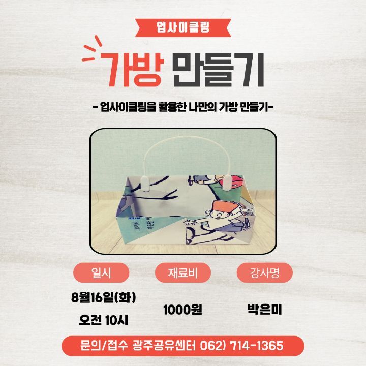 업사이클링 가방 만들기 체험 참가자 모집 안내