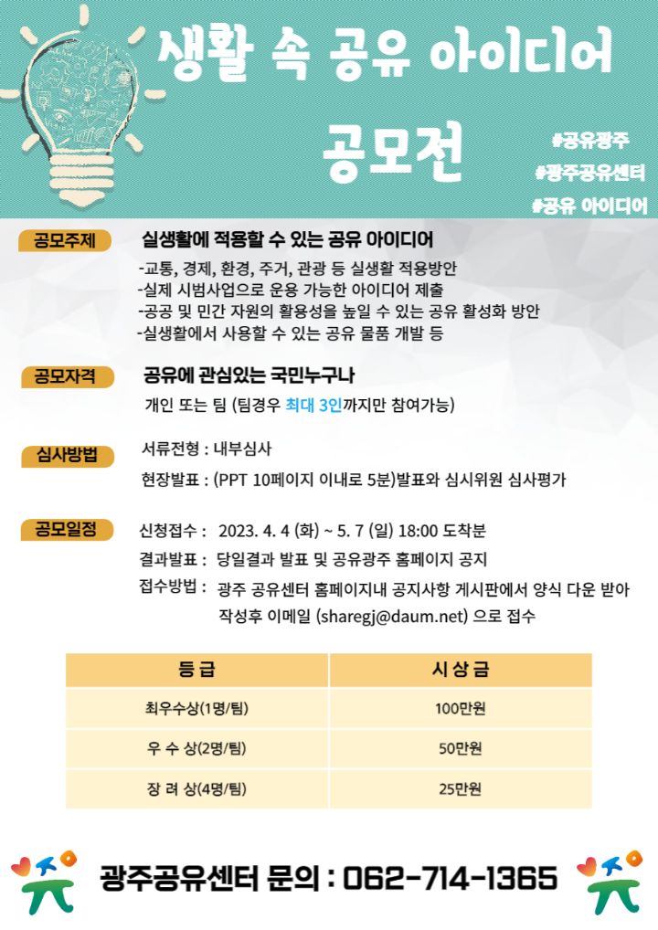 광주 공유센터에서는 생활속 공유 아이디어 공모전을 개최합니다.